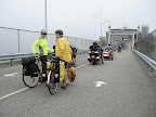 Since we had no choice, we kept going and started day dreaming about many things: how much easier this trip would be if we stayed in hotels and only ate at restaurants - imagine how much less weight we would be carrying on our bikes! We also lamented the fact that since we were biking along the "armpit" of the coast, if there were only a bridge, it would have saved us this whole day. And lastly, there's always the sobering thought if we were driving, this would all just take a day! All the while we were climbing more and more hills - the type that when you reach the crest, it doesn't plummet down to give you some coasting; it instead barely levels off and then goes up again. The scenery was strange: all farmland on the top of the world, cordoned off by muddy rivers.