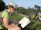 Today was like watching a story play out. We woke up sore and tired and insatiably hungry. The heat was so strong even in the morning that sleeping more was out of the question. We wearily packed up and began our most physically and mentally grueling day yet. By the fourth mile we were exhausted from the already daunting hills and stopped at a antiques store/cafe. From the outside it seemed like the dime a dozen stores that we've been passing since Maine, but on the inside it was a strange hippie oasis: the baristas had dreds, the coffee was Free Trade, they had soy milk for coffee and even vegan muffins! As we sat on the patio enjoying portabella paninis, in disbelief, one of the baristas came out to shoot the breeze about bikes, telling us that he had once owned a bike shop and then expecting us to know all the pros and cons about different fancy frames (it's funny that everyone assumes we know so much about biking just because we decided to do a long trip and look important with all the gear on our bikes).